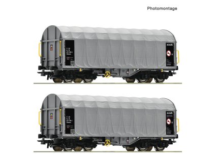 Dvoudílná sada posuvných plachtových vagónů typu Shimmns od Českých státních drah.■ Ideální pro formování ucelených vlaků