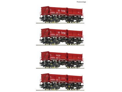 Souprava čtyř sklápěcích vozů typu Fans 128 společnosti Deutsche Bahn.■ Tři různá loga■ Různá pojezdová čísla■ Jeden vůz s ruční brzdou■ Ideální pro sestavení ucelených vlaků